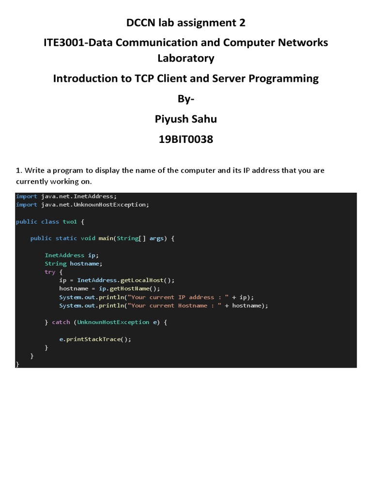 dout.writeUTF("Hello my name is Piyush Sahu 19BIT0038");