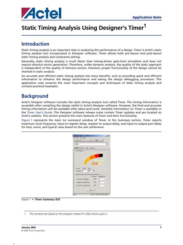 Static timing analysis is an important step in analyzing the performance of a design. Timer is Actel's static