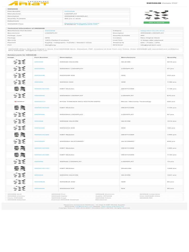 SW5084B 464pcs New and Original in Stock, Find SW5084B Stock, Datasheet, PDF, Inventory at Ariat-Tech.com Online, Order SW5084B with warrantied and confidence.