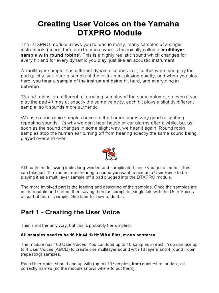 For example User Voice 1 might be 10 snare head hits from quiet to loud.
