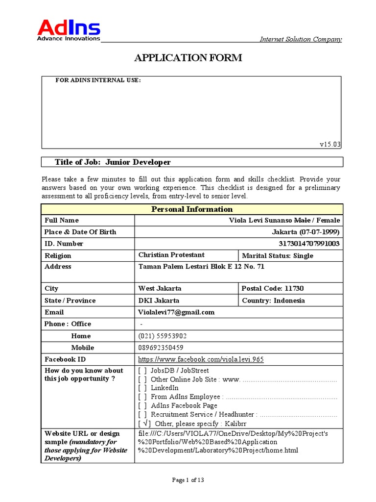 Please take a few minutes to fill out this application form and skills checklist. Provide your