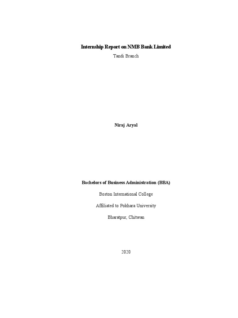 This internship has been completed in the NMB Bank Limited Tandi Branch.