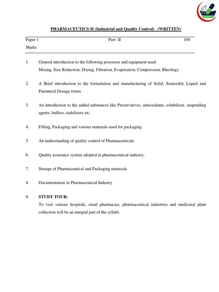 PHARMACEUTICS-II (Industrial and Quality Control) (WRITTEN)