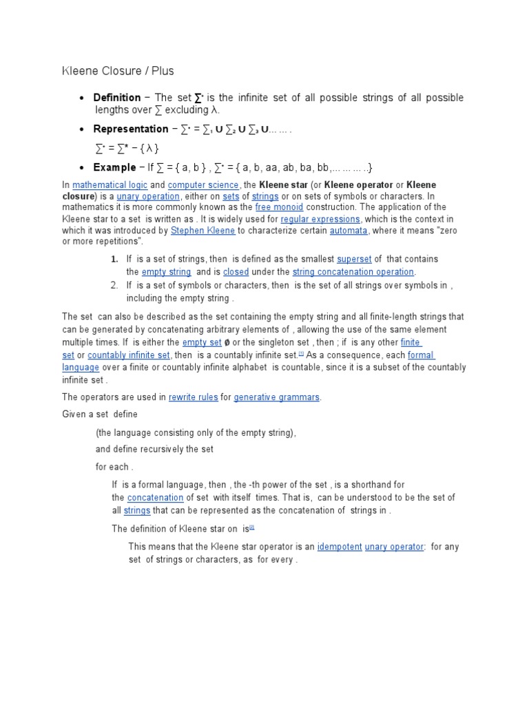 Example − If ∑ = { a, b } , ∑+ = { a, b, aa, ab, ba, bb,………..}