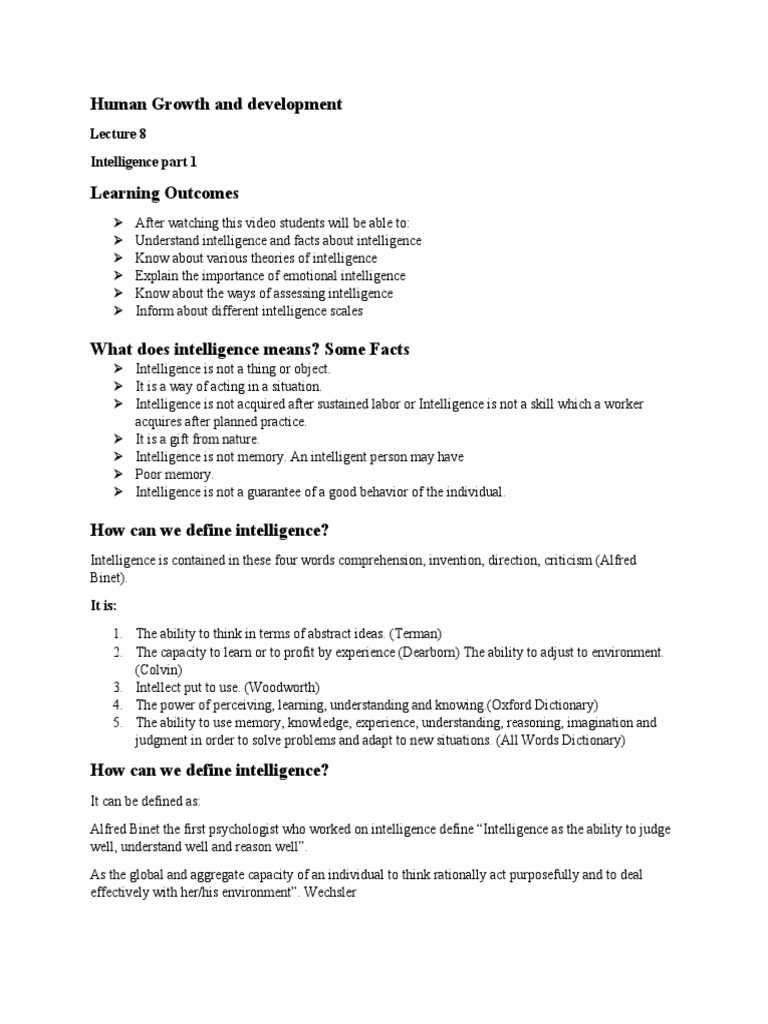 Intelligence is the power or capacity of human being: Intelligence is the power or capacity of human