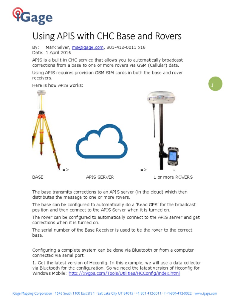 Using APIS requires provision GSM SIM cards in both the base and rover