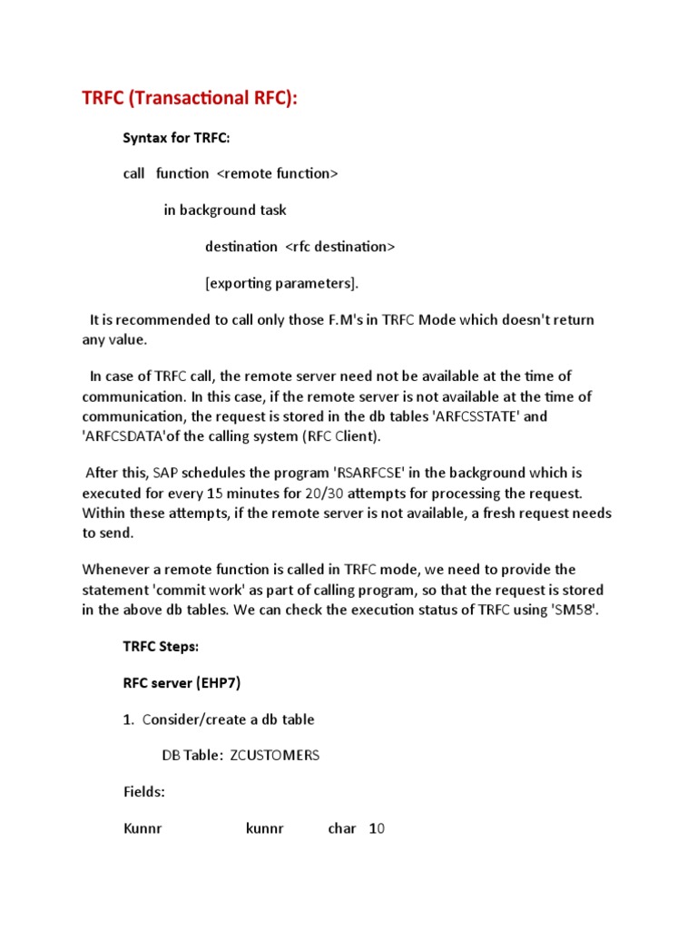 Syntax for TRFC: