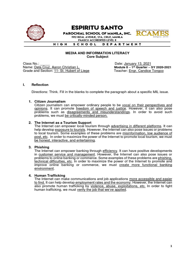 Name: Dela Cruz, Aaron Christian L. Module 8 – 1st Quarter – SY 2020-2021