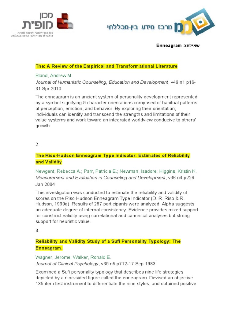 The Enneagram: A Review of the Empirical and Transformational Literature