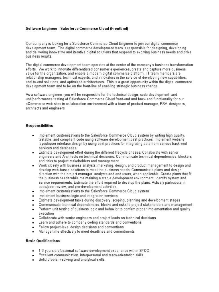 Our company is looking for a Salesforce Commerce Cloud Engineer to join our digital commerce