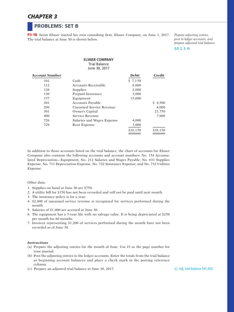P3-1B Jason Elsner started his own consulting firm, Elsner Company, on June 1, 2017. Prepare adjusting entries,