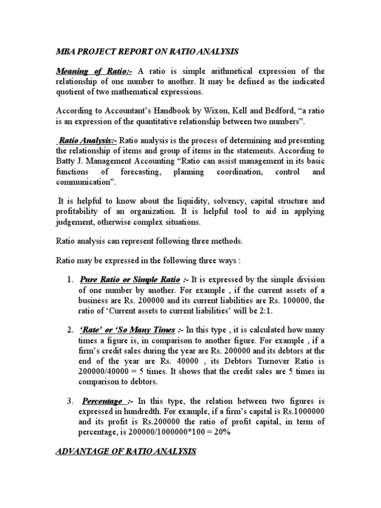 MBA PROJECT REPORT ON RATIO ANALYSIS