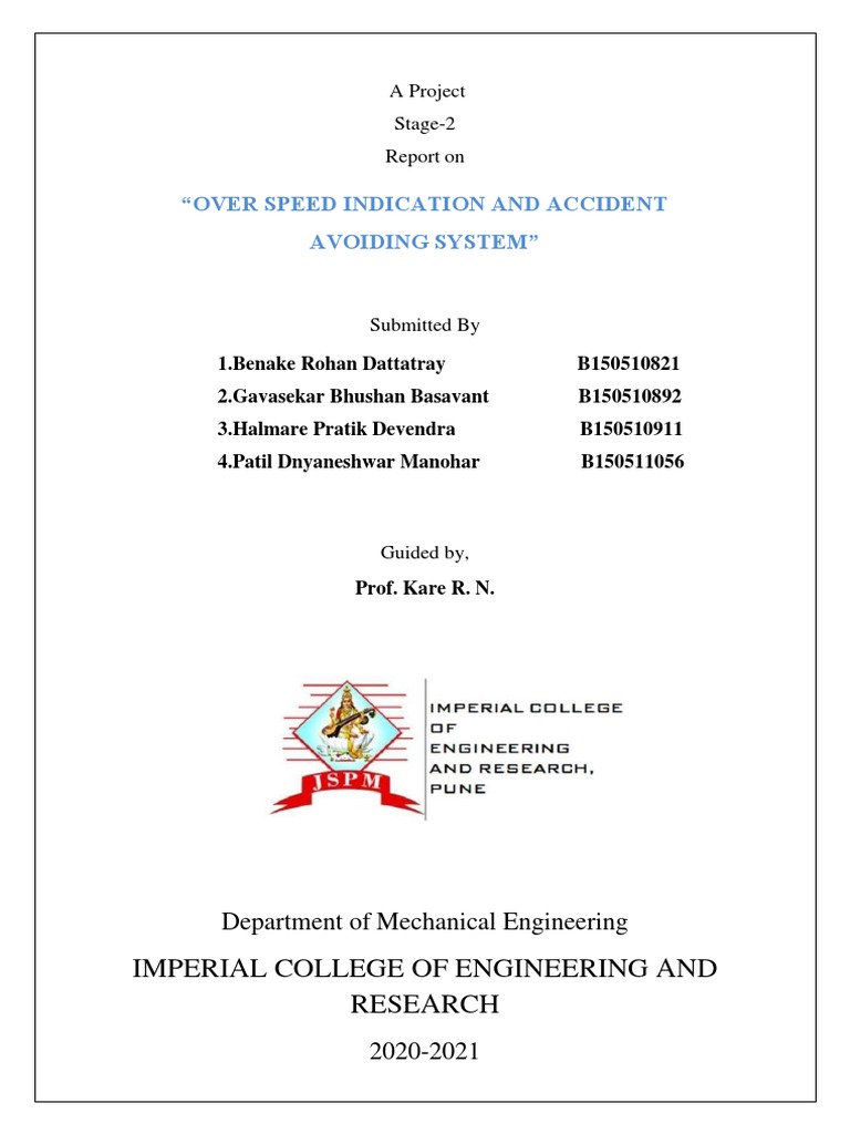 has successfully completed the Project Stage-2 entitled “OVER SPEED