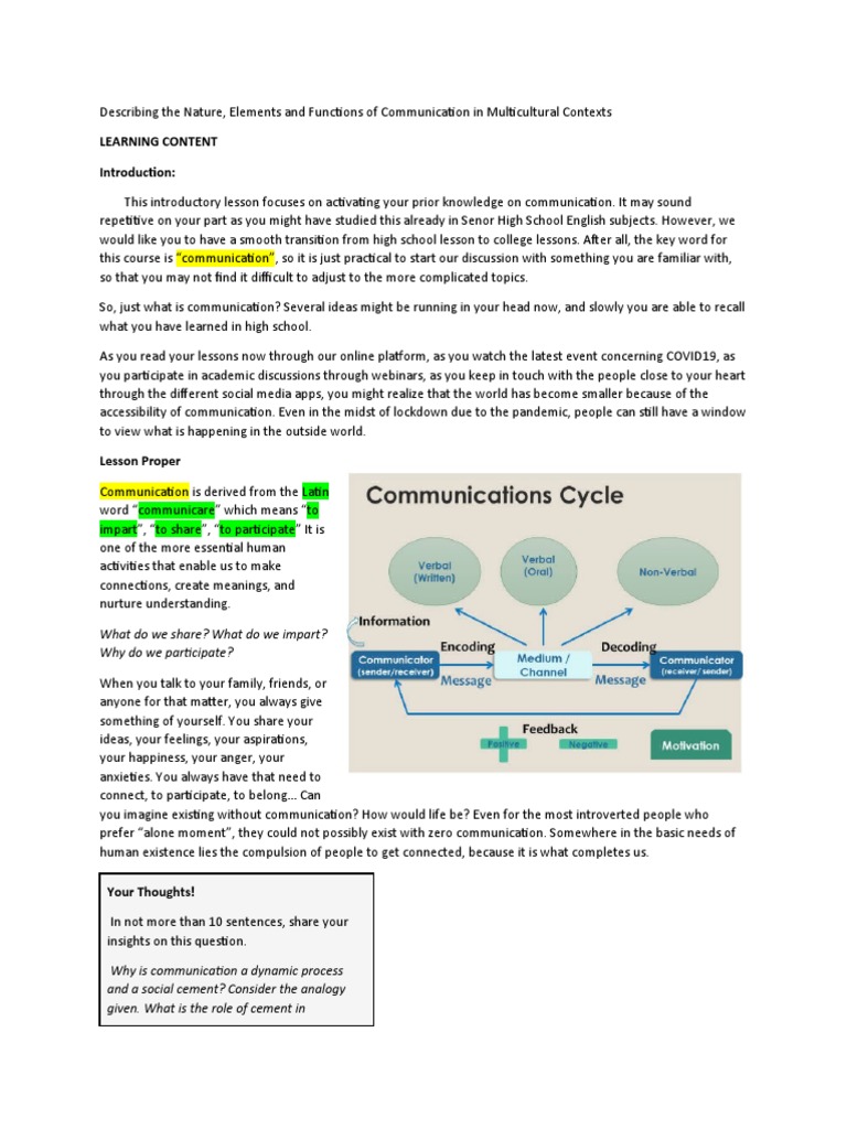 This introductory lesson focuses on activating your prior knowledge on communication. It may sound