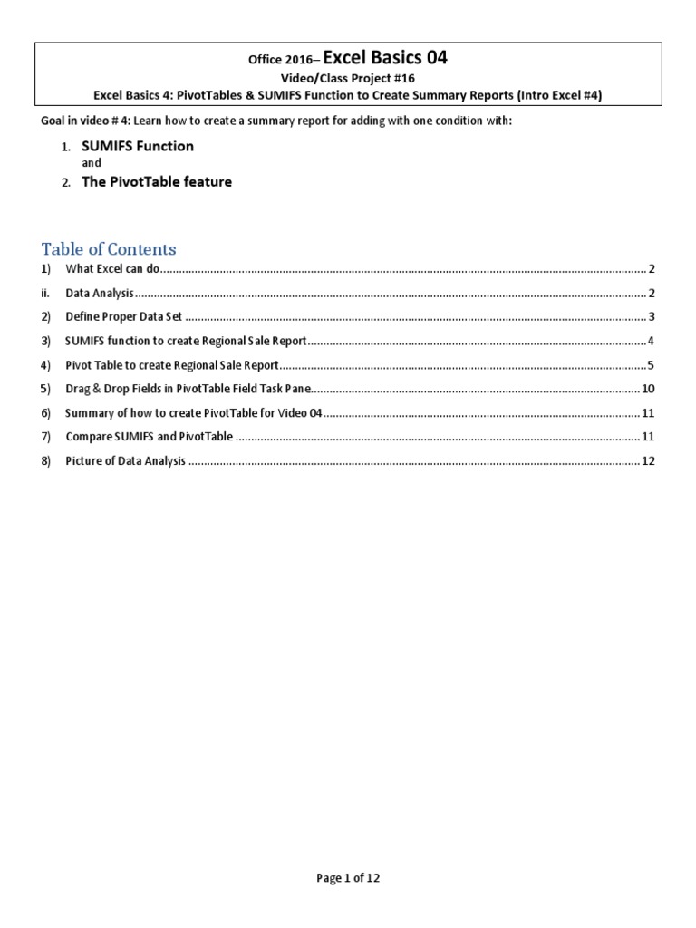 6) Summary of how to create PivotTable for Video 04 ..................................................................................................... 11