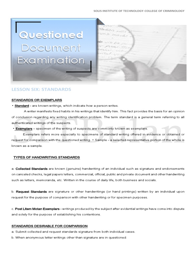 ▪ Exemplars – specimen of the writing of suspects are commonly known as exemplars.