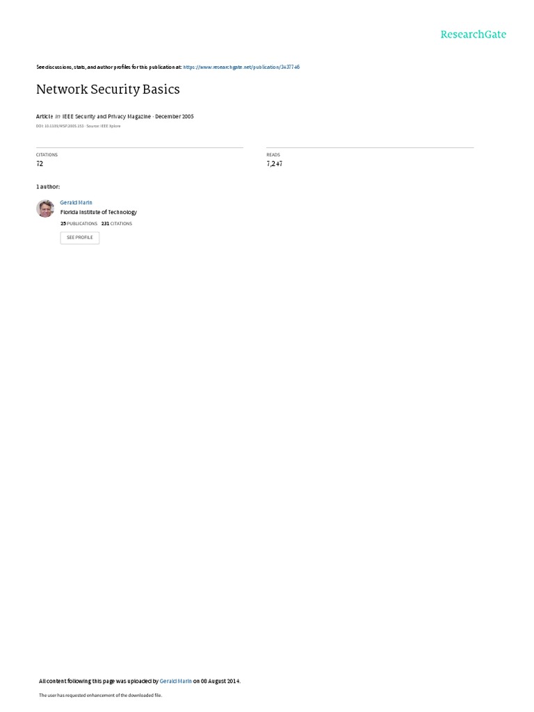 Network Security Basics: IEEE Security and Privacy Magazine December 2005