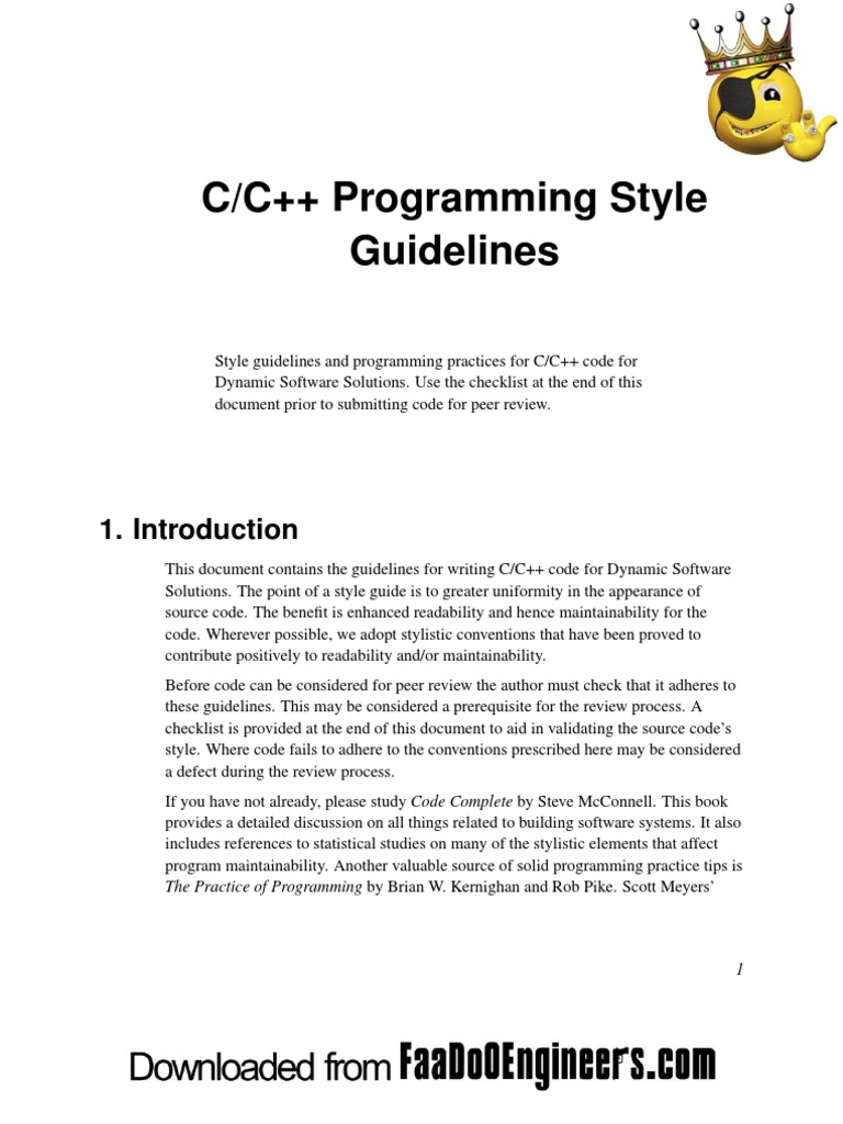 This document contains the guidelines for writing C/C++ code for Dynamic Software