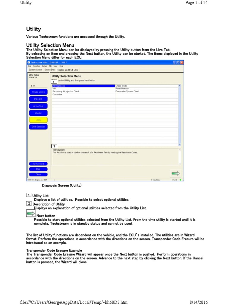 Various Techstream functions are accessed through the Utility.
