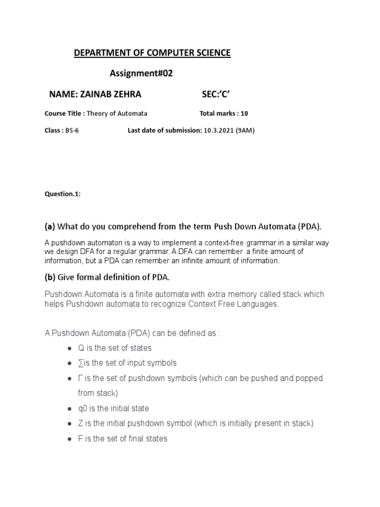 Class : BS-6 Last date of submission: 10.3.2021 (9AM)