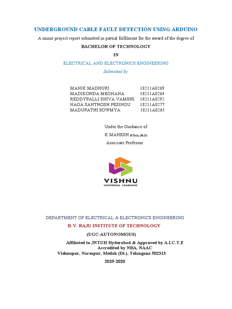 This is to certify that the thesis entitled “UNDERGROUND CABLE FAULT
