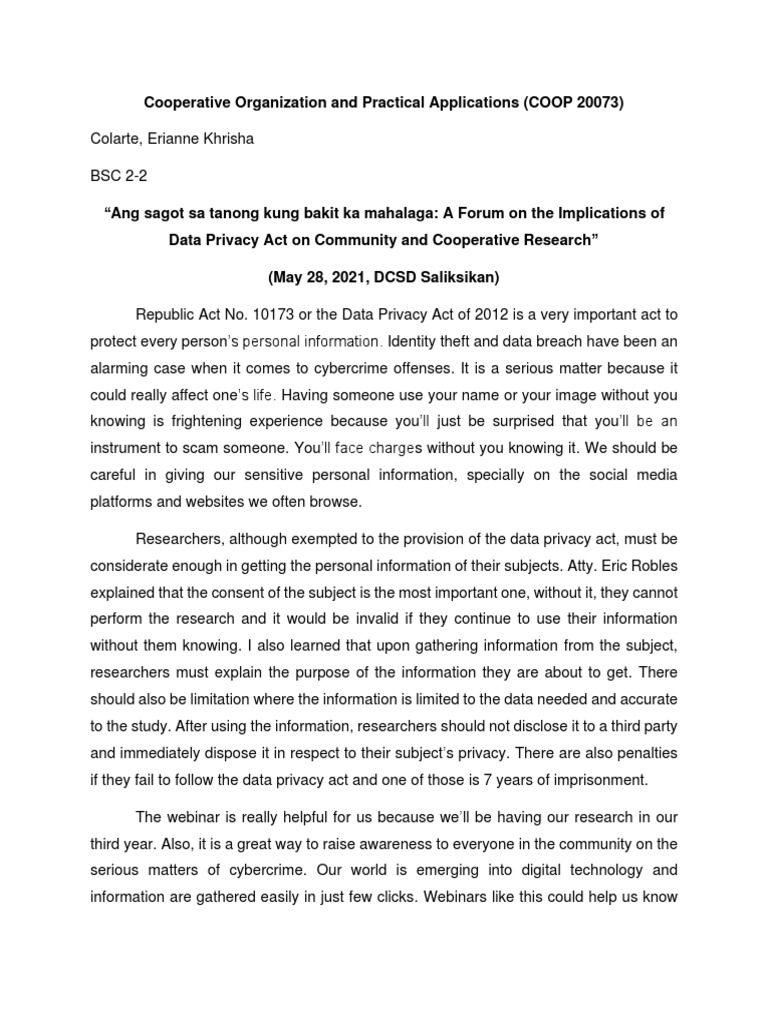 Republic Act No. 10173 or the Data Privacy Act of 2012 is a very important act to
