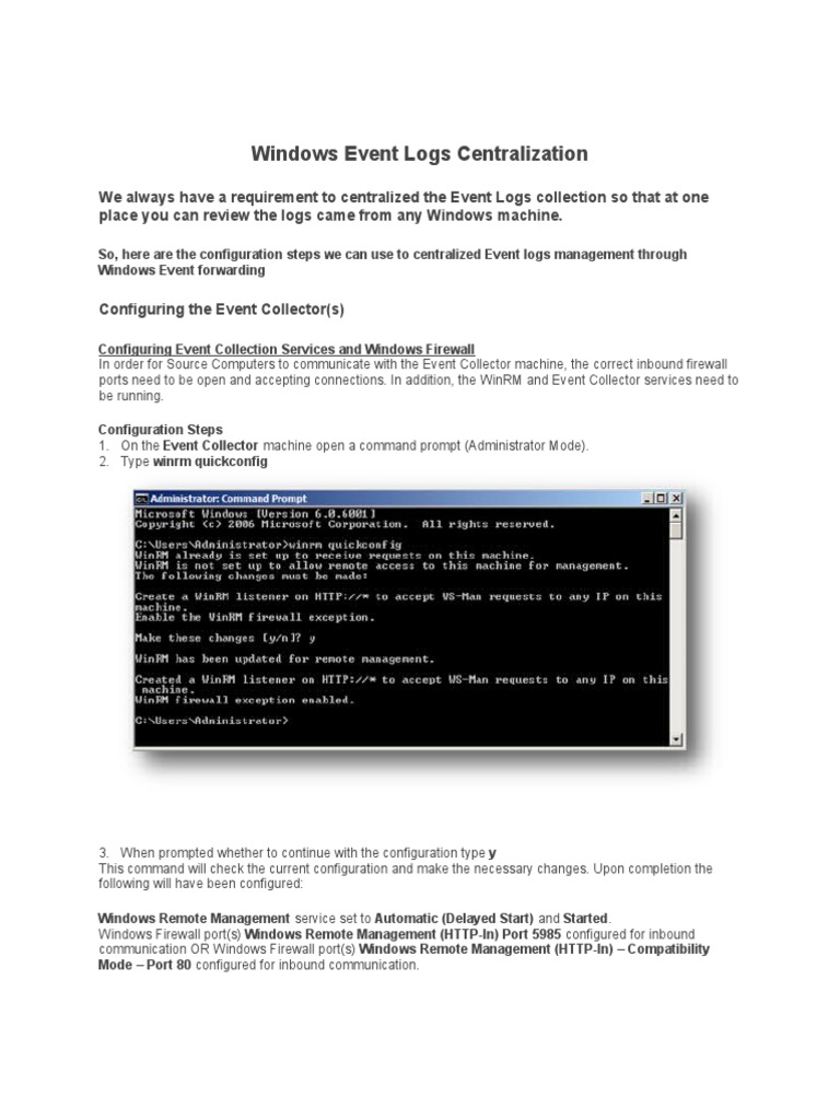 1. On the Event Collector machine open a command prompt (Administrator Mode).