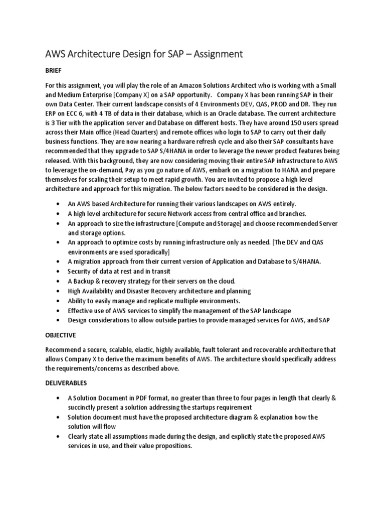 released. With this background, they are now considering moving their entire SAP infrastructure to AWS