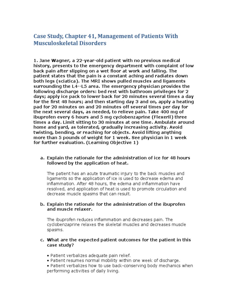 1. Jane Wagner, a 22-year-old patient with no previous medical