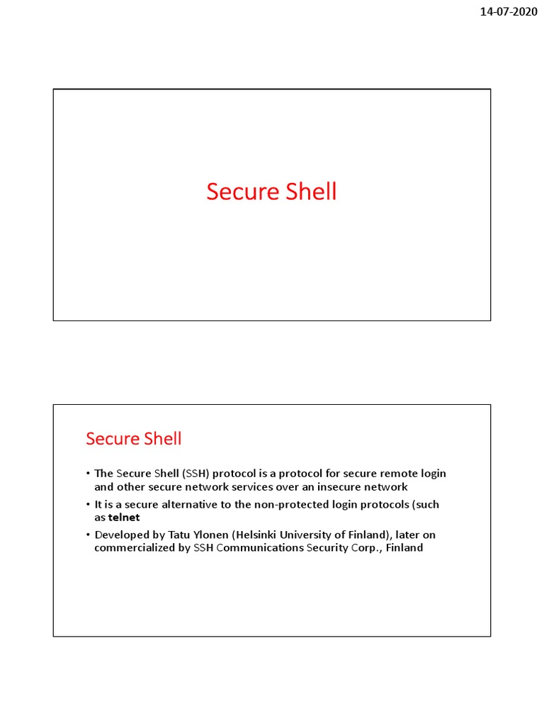 • The Secure Shell (SSH) protocol is a protocol for secure remote login