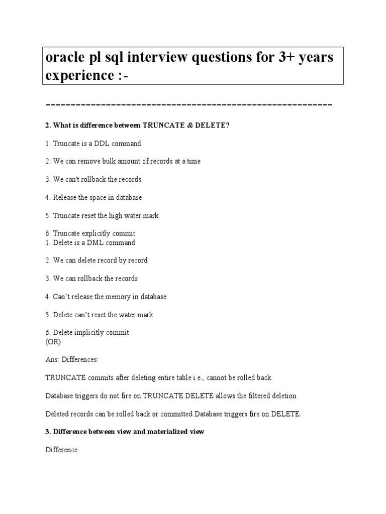 Oracle PL SQL Interview Questions For 3 - Years Experience