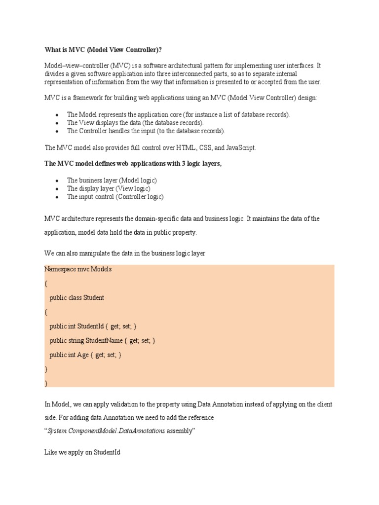 the view. The MVC Model contains all application logic (business logic, validation logic, and data access