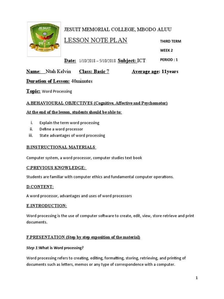 Name: Ntah Kelvin Class: Basic 7 Average age: 11years