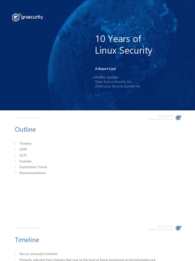 • August 2010 – “Linux Security in 10 Years” presented at Linux Security Summit
