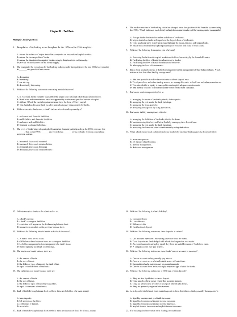15. The liabilities on a bank's balance sheet are: 21. Which of the following statements is NOT true of term deposits?