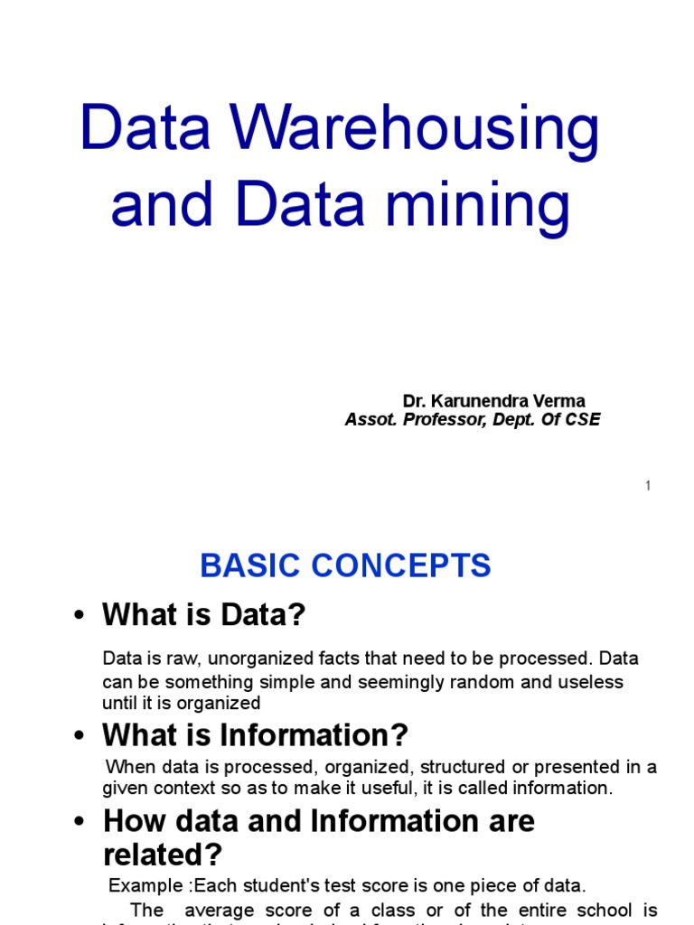 Data Warehousing and Data Mining: Dr. Karunendra Verma