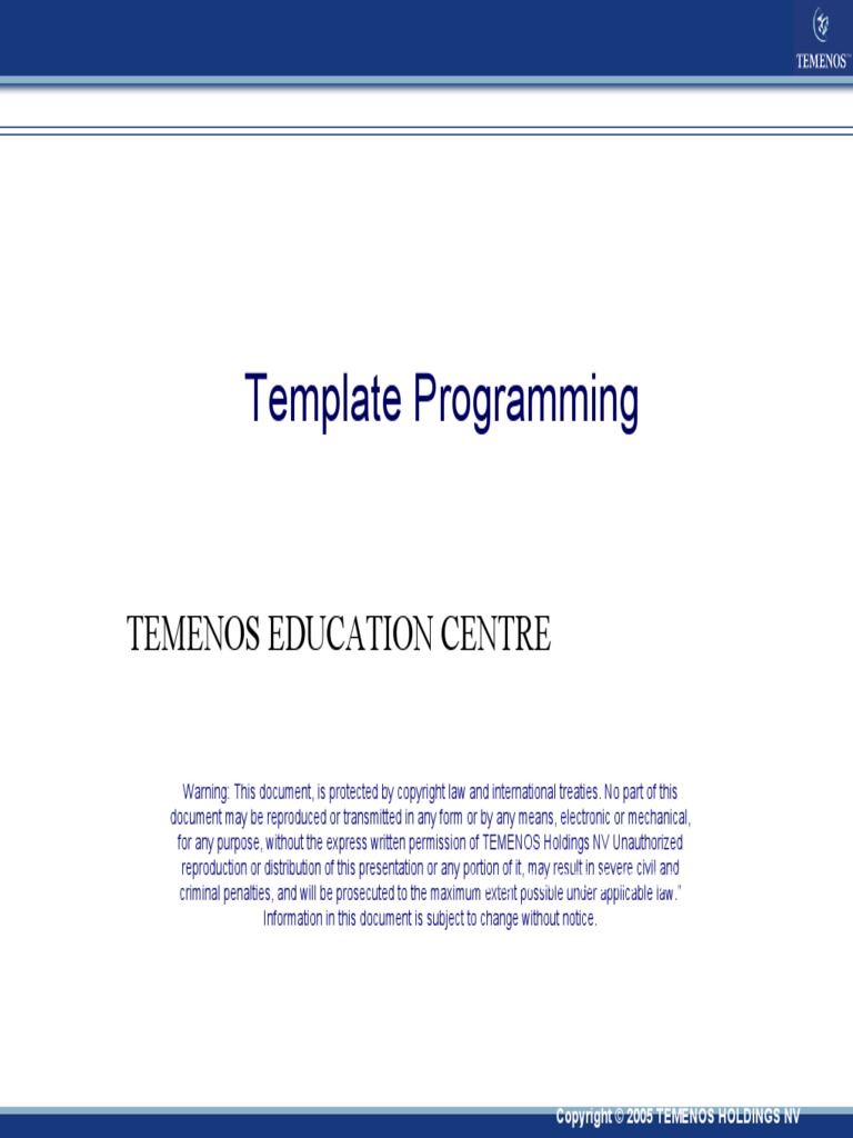T3DT – R05 – 1.0 Copyright © 2005 TEMENOS HOLDINGS NV
