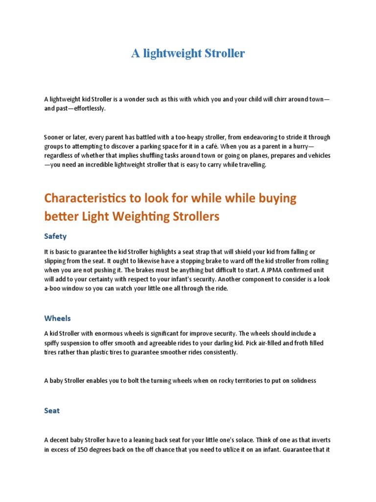 The fundamental explanation one is going for a lightweight stroller and not a conventional one is to get