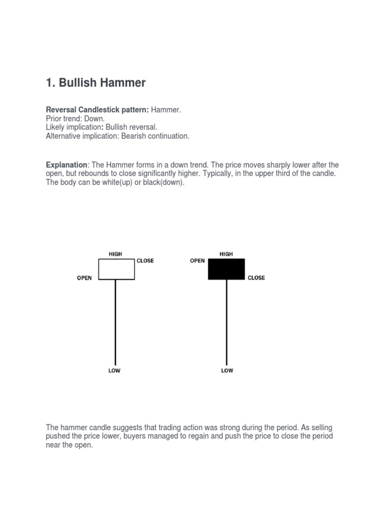 • Bullish reversal: The hammer candlestick pattern must be preceded by down trend.