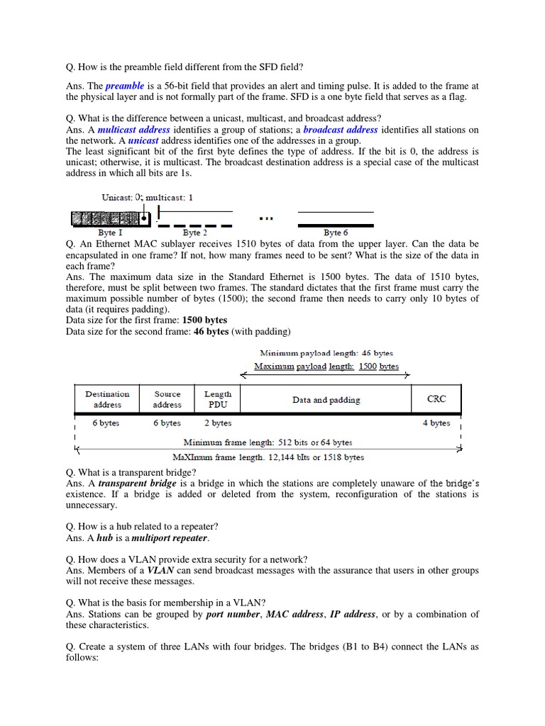 Ans. The preamble is a 56-bit field that provides an alert and timing pulse. It is added to the frame at