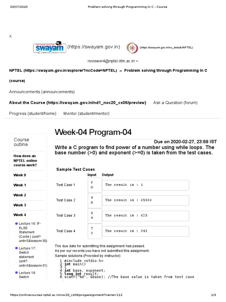 NPTEL (https://swayam.gov.in/explorer?ncCode=NPTEL) » Problem solving through Programming In C