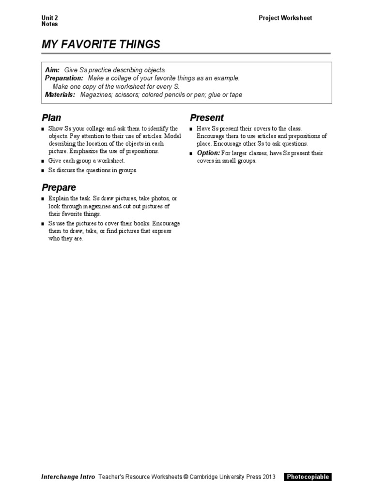Interchange Intro Teacher’s Resource Worksheets © Cambridge University Press 2013 Photocopiable