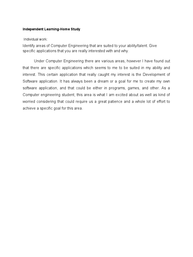 Identify areas of Computer Engineering that are suited to your ability/talent. Give