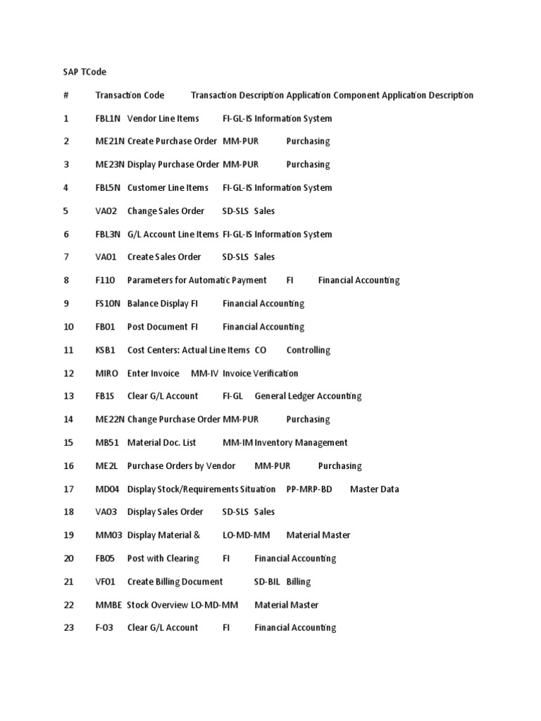 SAP TCode