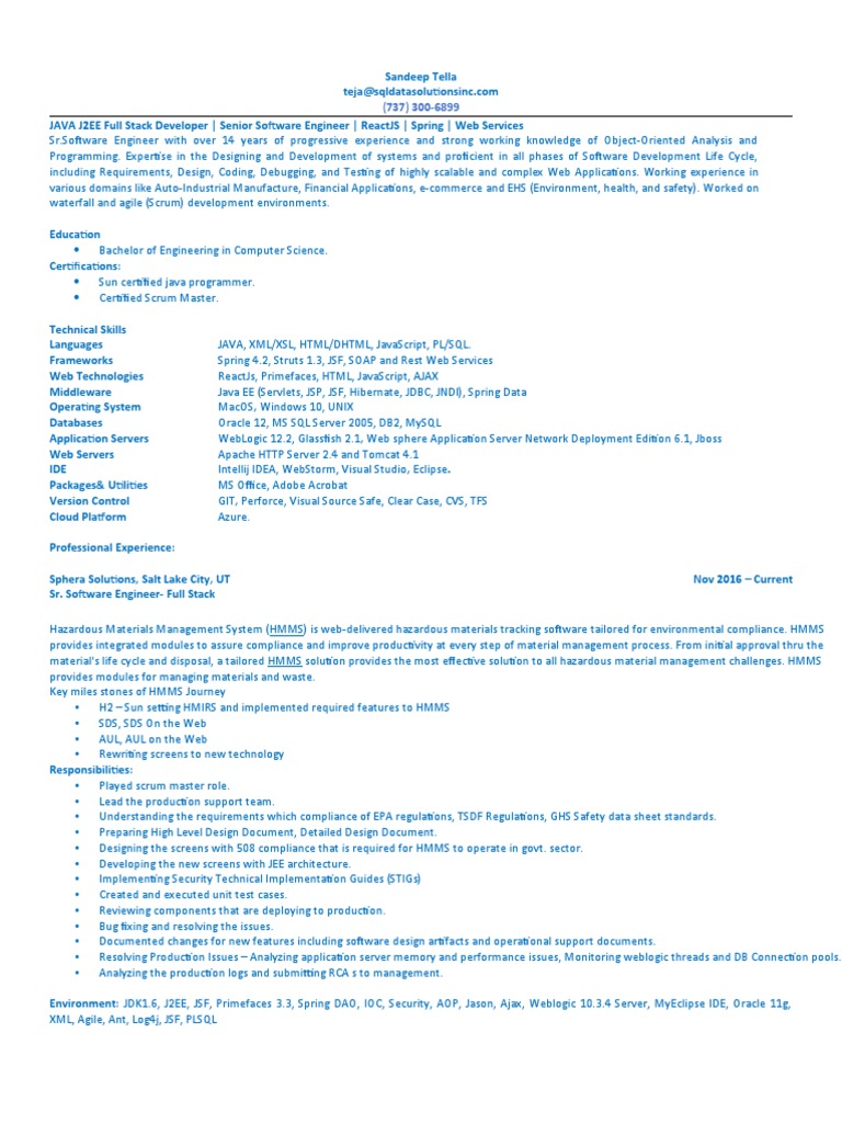 JAVA J2EE Full Stack Developer | Senior Software Engineer | ReactJS | Spring | Web Services