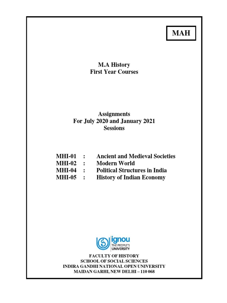 M.A. History – 1st Year Assignments