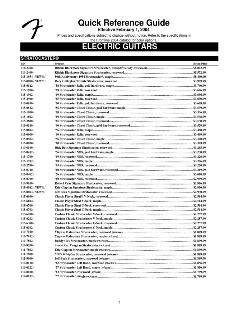 010-0102- ‘57 Stratocaster, maple (w/case)………………………………………………………………………………… $1,799.99