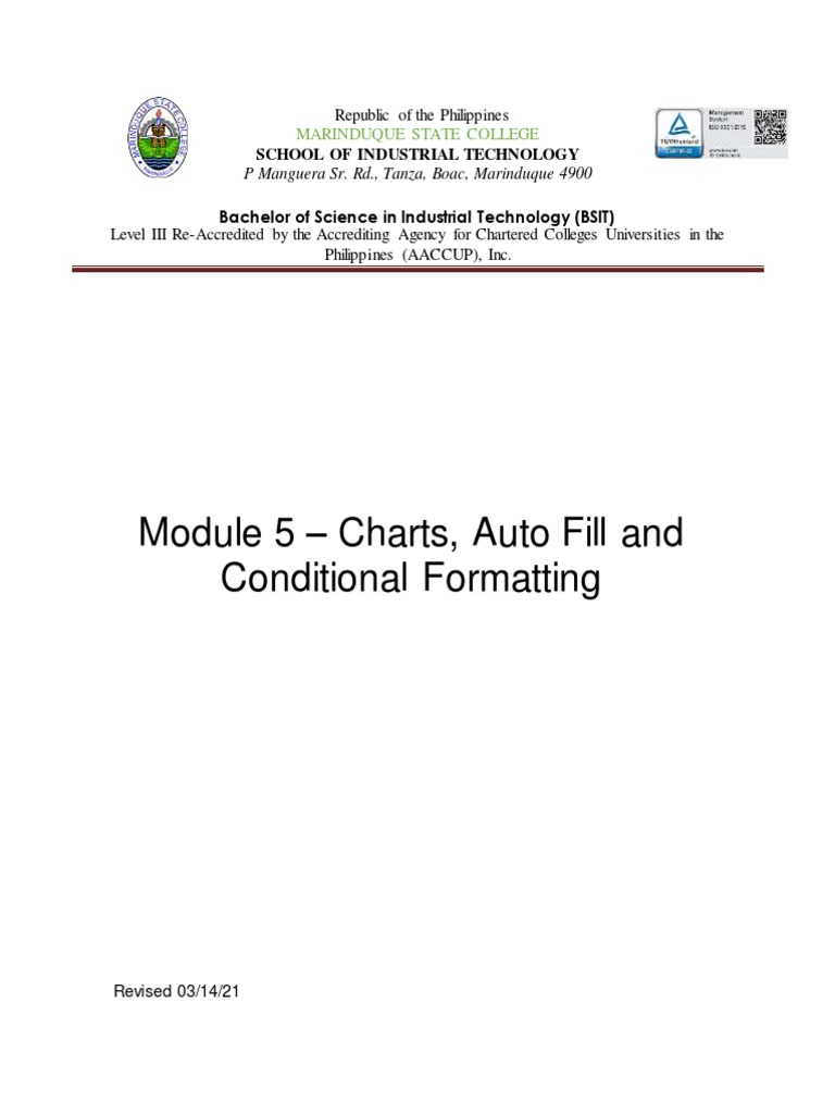 with the addition of Auto fill. Additionally, this module will focus on the many different types of Charts