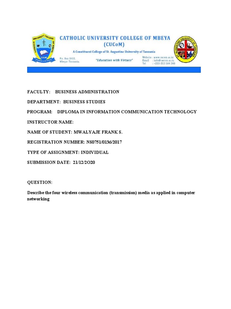 NAME OF STUDENT: MWALYAJE FRANK S.