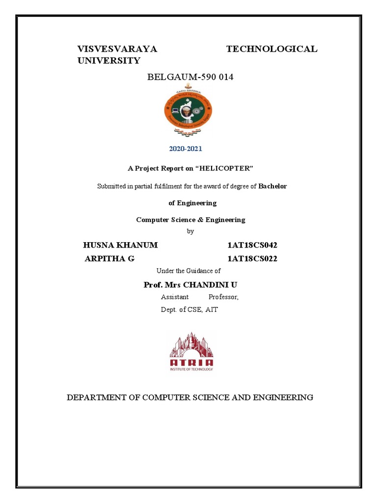 “HELICOPTER” has been carried out under the supervision of Prof. Mrs Chandini U,